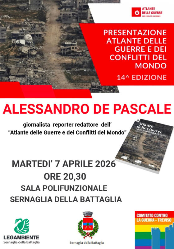Il 7 aprile alle 20.30 alla sala polifunzionale di Sernaglia della Battaglia (Treviso) presentazione della XIV edizione dell’Atlante delle guerre con Alessandro De Pascale.