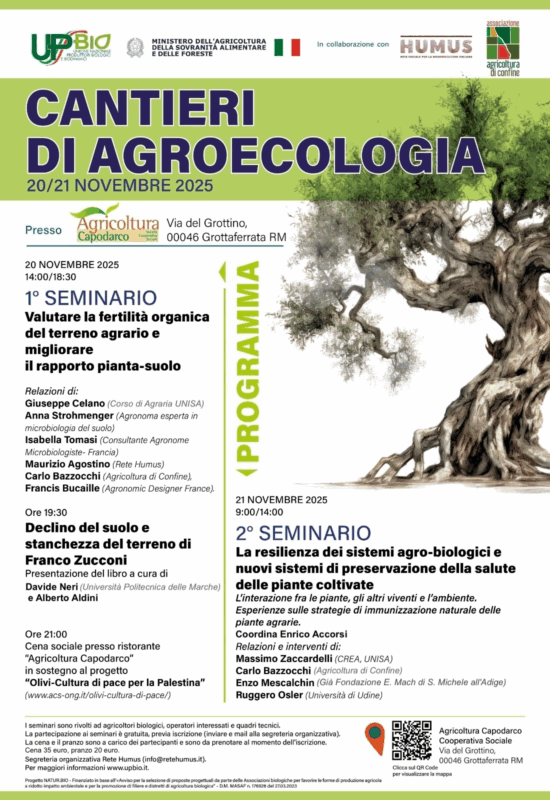 Il 20 e 21 novembre a Grottaferrata (Roma) si tiene l’iniziativa “Cantieri di agroecologia”, promossa da UpBio con la collaborazione di Rete Humus e l’associazione Agricoltura di Confine.