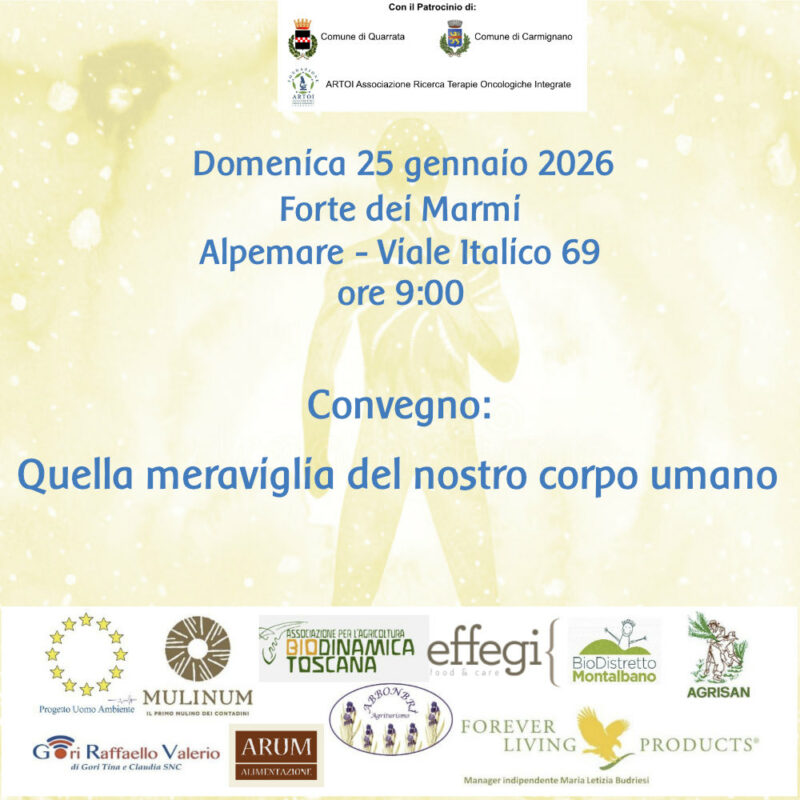 Domenica 25 gennaio dalle ore 9 alle ore 17 convegno “Quella meraviglia del nostro corpo umano” presso Alpemare, sala Marecalmo 2, viale Italiano 69 a Forte dei Marmi.