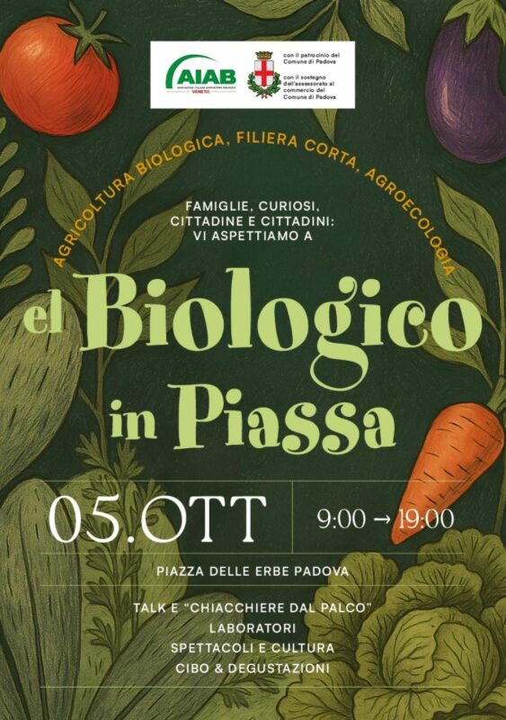 Evento realizzato con il patrocinio del Comune di Padova e il sostegno dell’assessorato al commercio e in collaborazione con Aiab Veneto. Non è solo un mercato, ma una festa aperta a tutti che celebra l’agricoltura biologica contadina, il commercio equosolidale, lo sviluppo sostenibile e gli stili di vita consapevoli. In piazza ci saranno aziende agricole, fornai, casari, artigiani, eno-gastronomia, associazioni e comitati per scoprire insieme prodotti biologici e artigianali, partecipare a visite guidate, a laboratori e a spettacoli che mettono in risalto la sostenibilità e il rispetto per l’ambiente. Per l’edizione 2025, si è deciso di portare una campagna ideale nel cuore della città, raccontando e valorizzando le tante forme in cui l’agroecologia prende vita anche in ambito urbano: prendendosi cura dell’ambiente, della comunità e della qualità della vita cittadina, con l’obiettivo di avvicinare le persone a una sostenibilità concreta, fatta di scelte quotidiane, relazioni autentiche e attenzione al territorio.