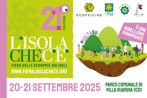 Sabato 20 e domenica 21 settembre torna per la 21^ edizione nel Parco comunale di Villa Guardia – Como L’isola che c’è. Solidarietà e volontariato, sostenibilità, valorizzazione del territorio, centralità delle relazioni, difesa e promozione dei beni comuni, partecipazione democratica sono i protagonisti alla Fiera delle economie solidali.