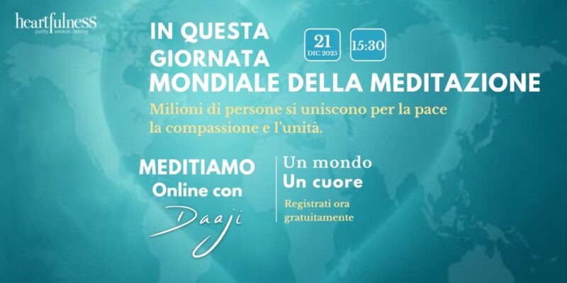 Domenica 21 dicembre alle 15.30 Heartfulness Italia promuove una meditazione di gruppo online nella giornata mondiale della meditazione.