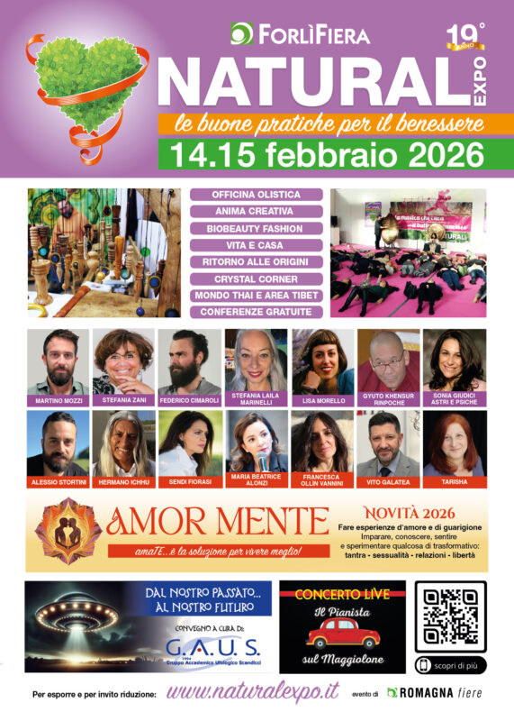 La kermesse forlivese è un punto di riferimento per un pubblico pronto e interessato, alla ricerca del benessere tramite uno stile di vita etico all’insegna dei metodi naturali. NaturalExpo è una vetrina espositiva, allestita su 14000 mq, che offre una vasta scelta di proposte e di prodotti innovativi per il benessere: cosmesi naturale, alimentazione biologica e vegana, risparmio energetico, arredamento, erboristeria e medicina alternativa. NaturalExpo 2026, nei giorni 14 e 15 febbraio, sarĂ un’occasione per fare ottimi acquisti e coinvolgerĂ pubblico e espositori in un’esperienza multisensoriale con workshop, corsi, mostre, laboratori e spettacoli gratuiti. Per questa nuova edizione abbiamo ampliato la proposta espositiva, per soddisfare le richieste di informazioni e approfondimenti sul benessere naturale applicato a nuove tematiche, grazie a: