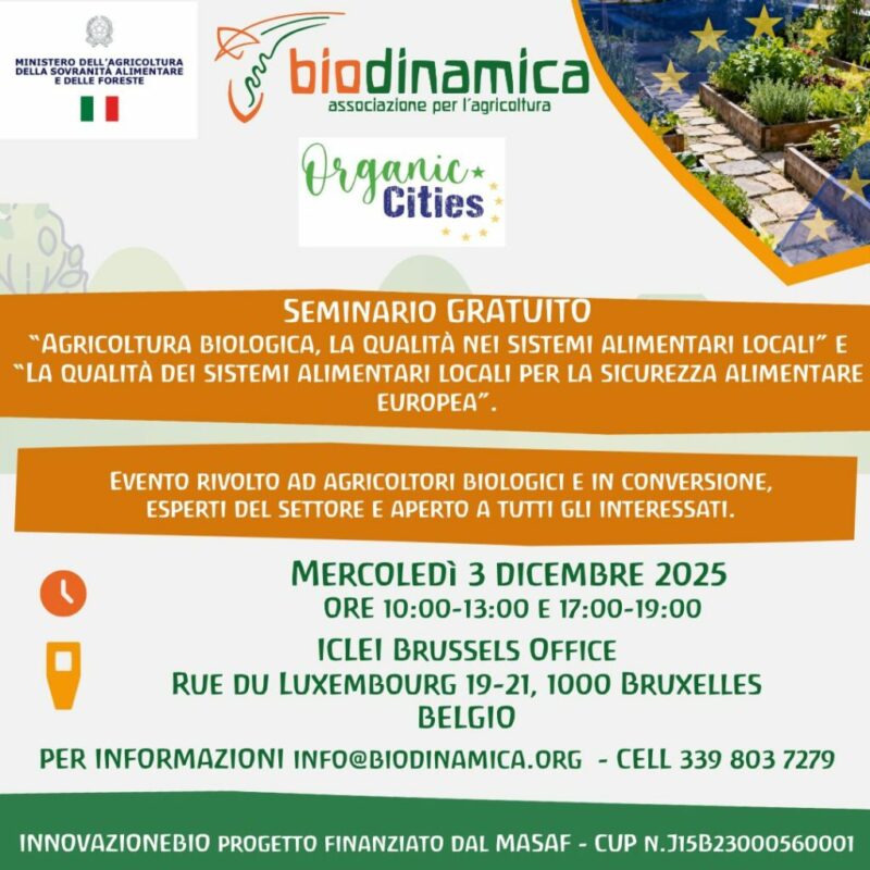 L’Associazione per l’Agricoltura Biodinamica organizza in collaborazione con Organic Cities Network Europe un seminario gratuito rivolto agli operatori, ai professionisti del biologico con un seminario a due temi: