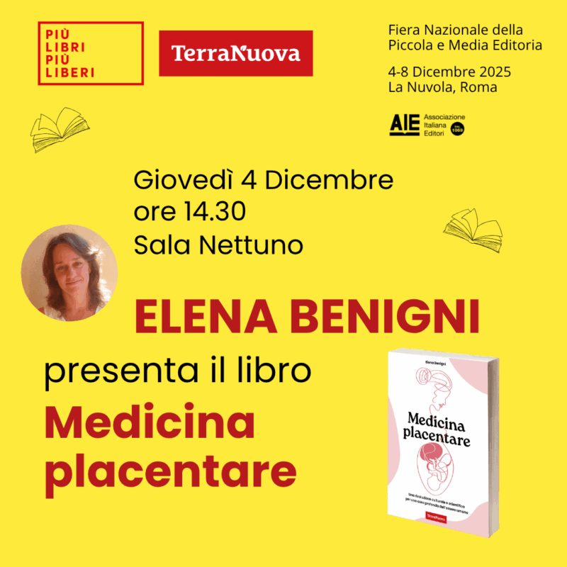 Giovedì 4 dicembre alle ore 14.30 alla Sala Nettuno, al centro La Nuvola nell’ambito della fiera dell’editoria “Più Libri Più Liberi”, la dottoressa Elena Benigni presenta il suo libro “Medicina placentare. Una rivoluzione culturale e scientifica per una cura profonda dell’essere umano” (Terra Nuova edizioni).