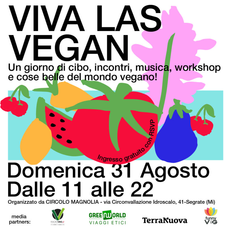 Dalle 11.00 alle 22.00, immersi nel verde del Parco Idroscalo, una giornata interamente dedicata a tutto ciò che di bello, buono e consapevole offre il mondo vegan, organizzata da Circolo Magnolia.